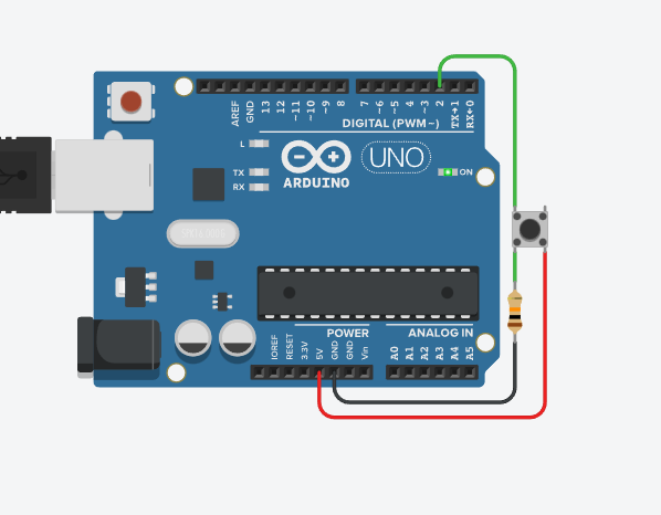 브레드 보드를 이용하는것이 수월하겠지만 그림으로 보여드리는것이기에 브래드 보느는 생략하고 보여드립니다. 2번 핀을 연결해 버튼을 누를때와 누르지 않을때의 값이 다르게 표현되는 것을 확인하실 수 있습니다.